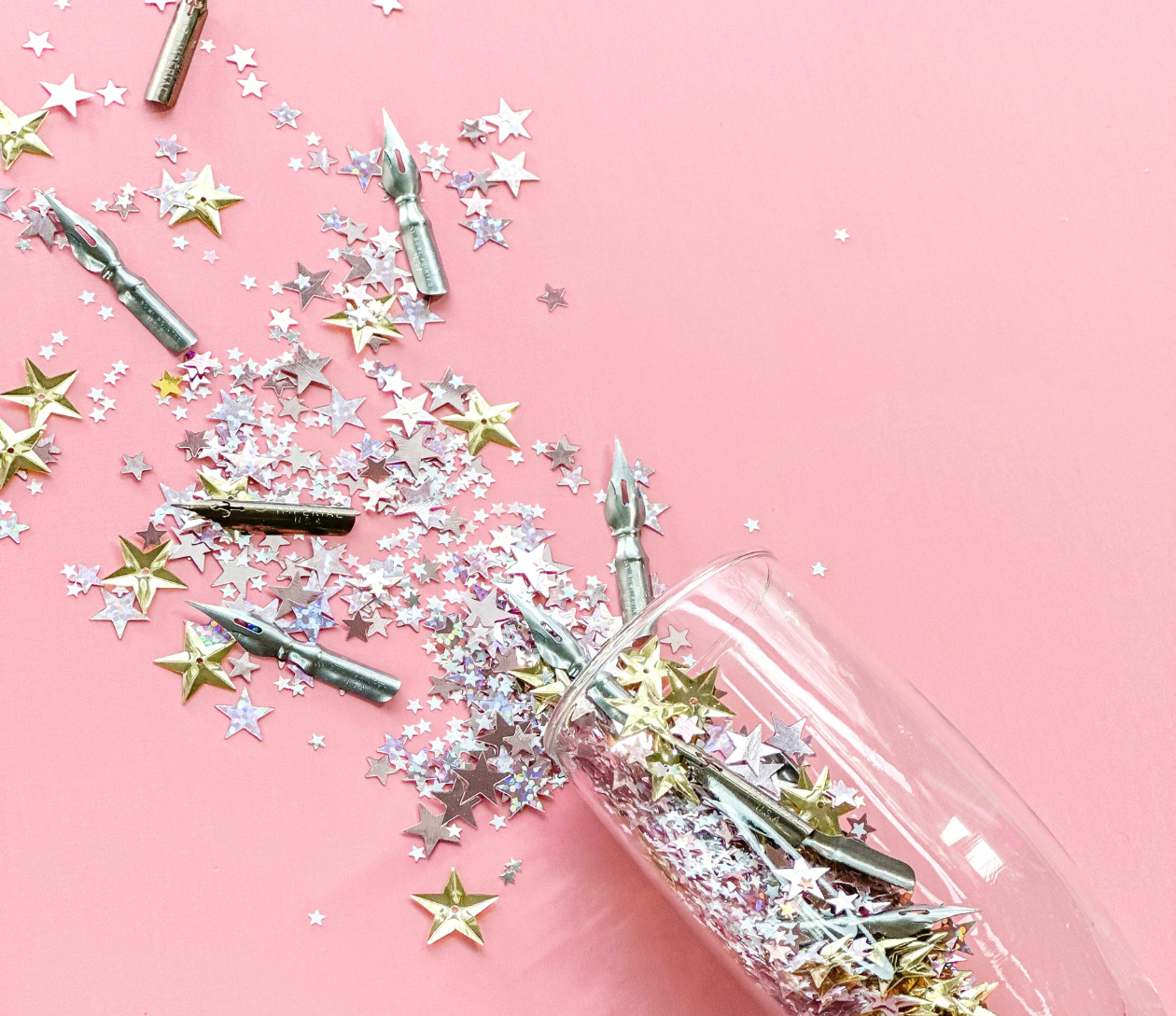 - Beginner calligraphy kit (two nibs, ink pot, letter guides, tracing paper, pen holder)