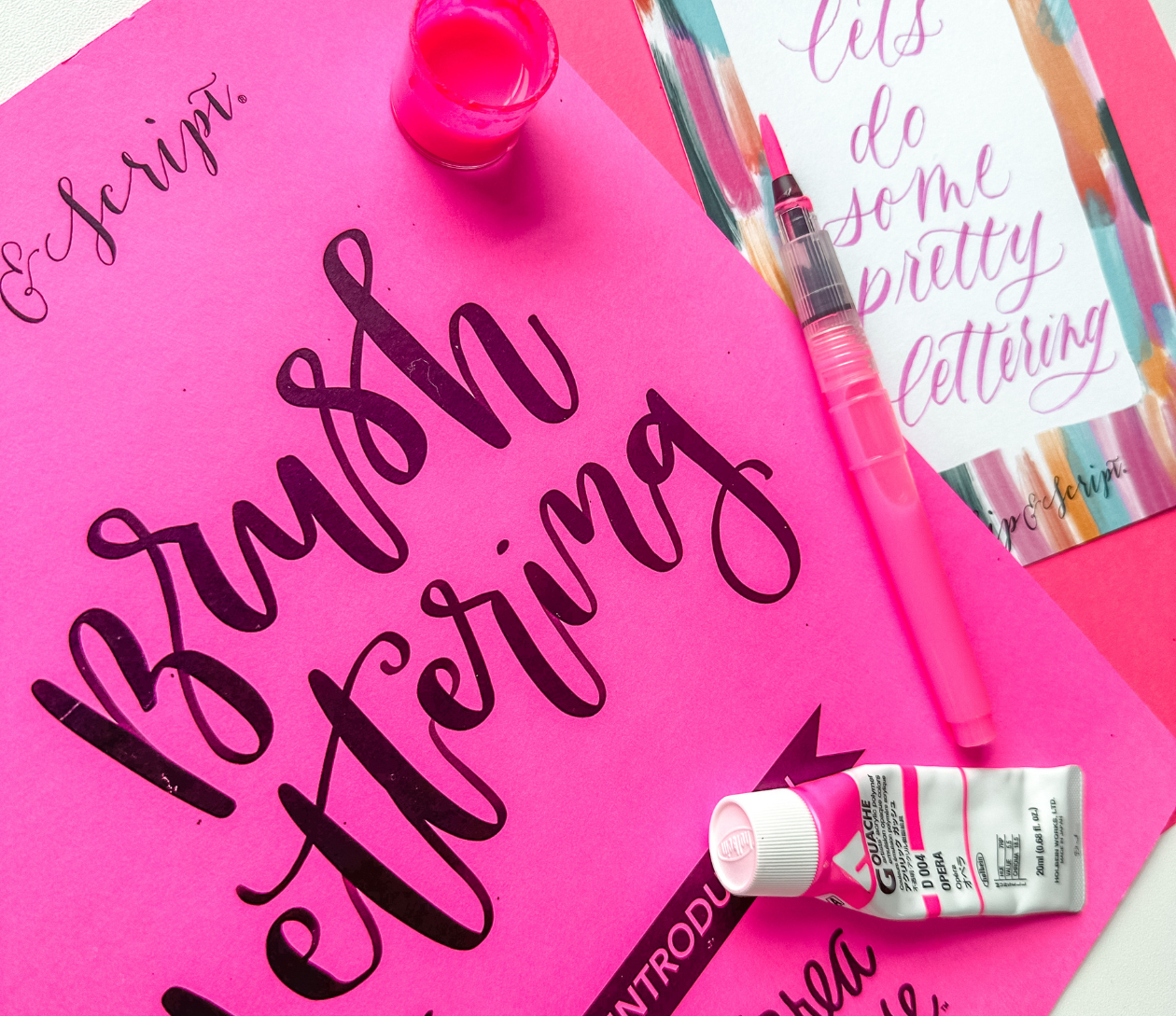 Class includes 1.5 hours of instruction and demonstration, our beginner’s brush lettering kit (watercolor paper, tracing paper, our Brush Lettering Guides Bundle, a black Tombow Brush Marker, a round paintbrush, an inkpot pre-filled with gouache, and a pipette), and all materials to write on. Everything is yours to keep at the end of the class!