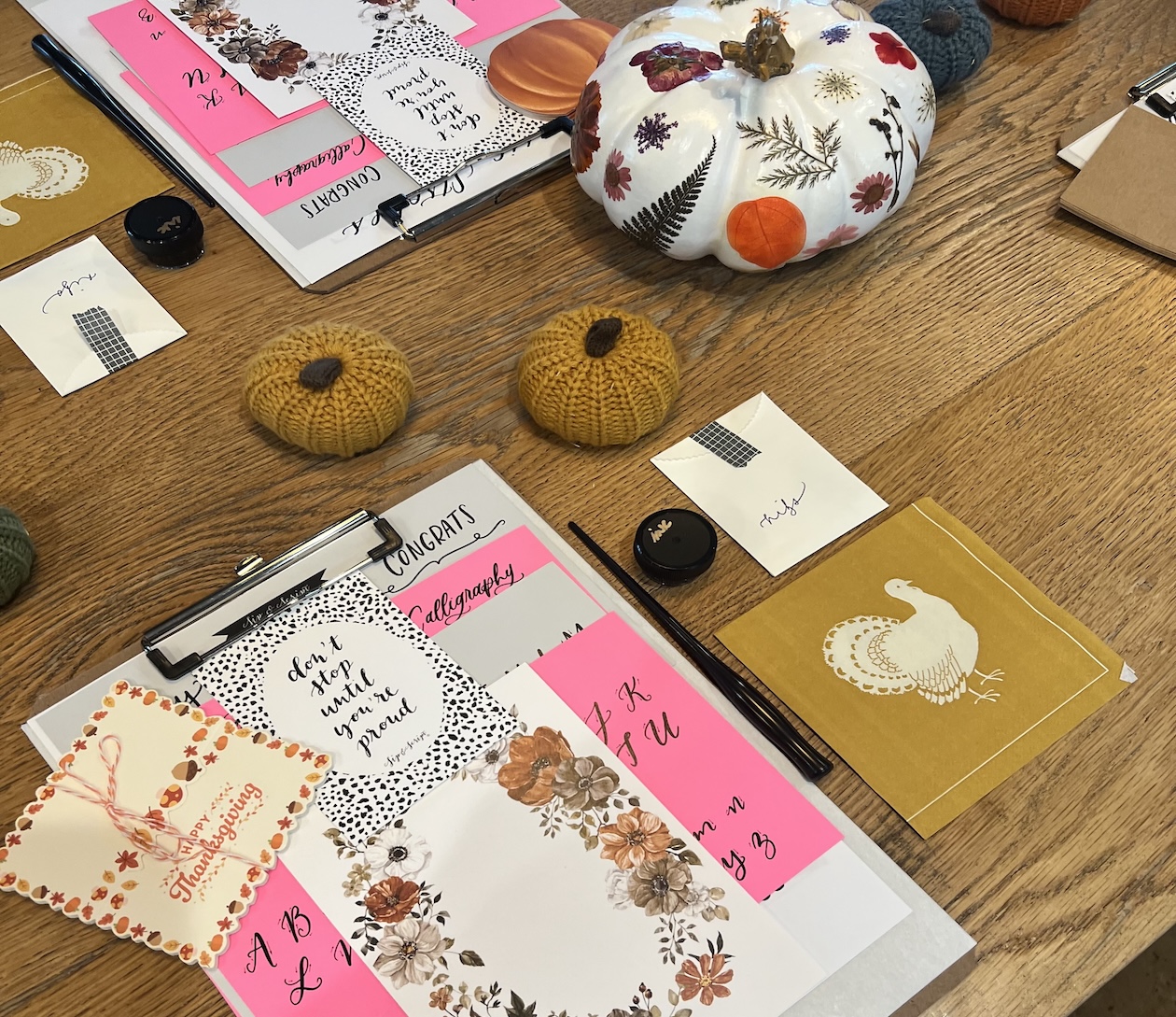 Join us at The Salty in Dallas, TX for a festive workshop of thankful fun and pretty lettering for beginners! Whether you’re a stationery nerd, DIY Bride-to-be, or just a crafty individual, in this workshop you’ll be learning an introduction to modern calligraphy with a pointed dip pen and ink. We will cover all the basics and get you ready to add those special lettered details to all your Thanksgiving holiday tables with place cards, menus, food labels, bar carts and more!