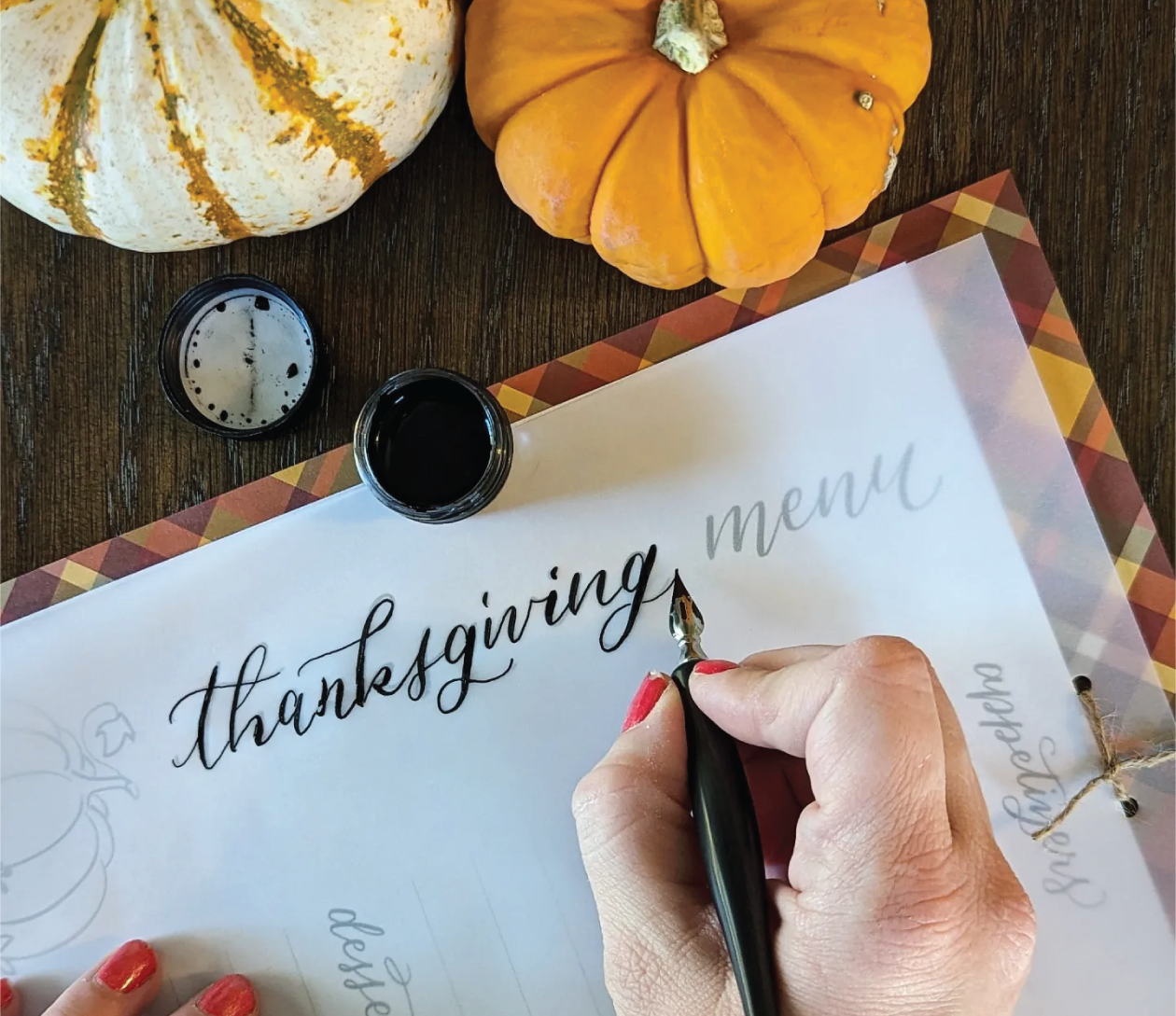 Join us at Moon Hollow Coffee in Omaha, NE for a festive workshop of thankful fun and pretty lettering for beginners! Whether you’re a stationery nerd, DIY Bride-to-be, or just a crafty individual, in this workshop you’ll be learning an introduction to modern calligraphy with a pointed dip pen and ink. We will cover all the basics and get you ready to add those special lettered details to all your Thanksgiving holiday tables with place cards, menus, food labels, bar carts and more!
