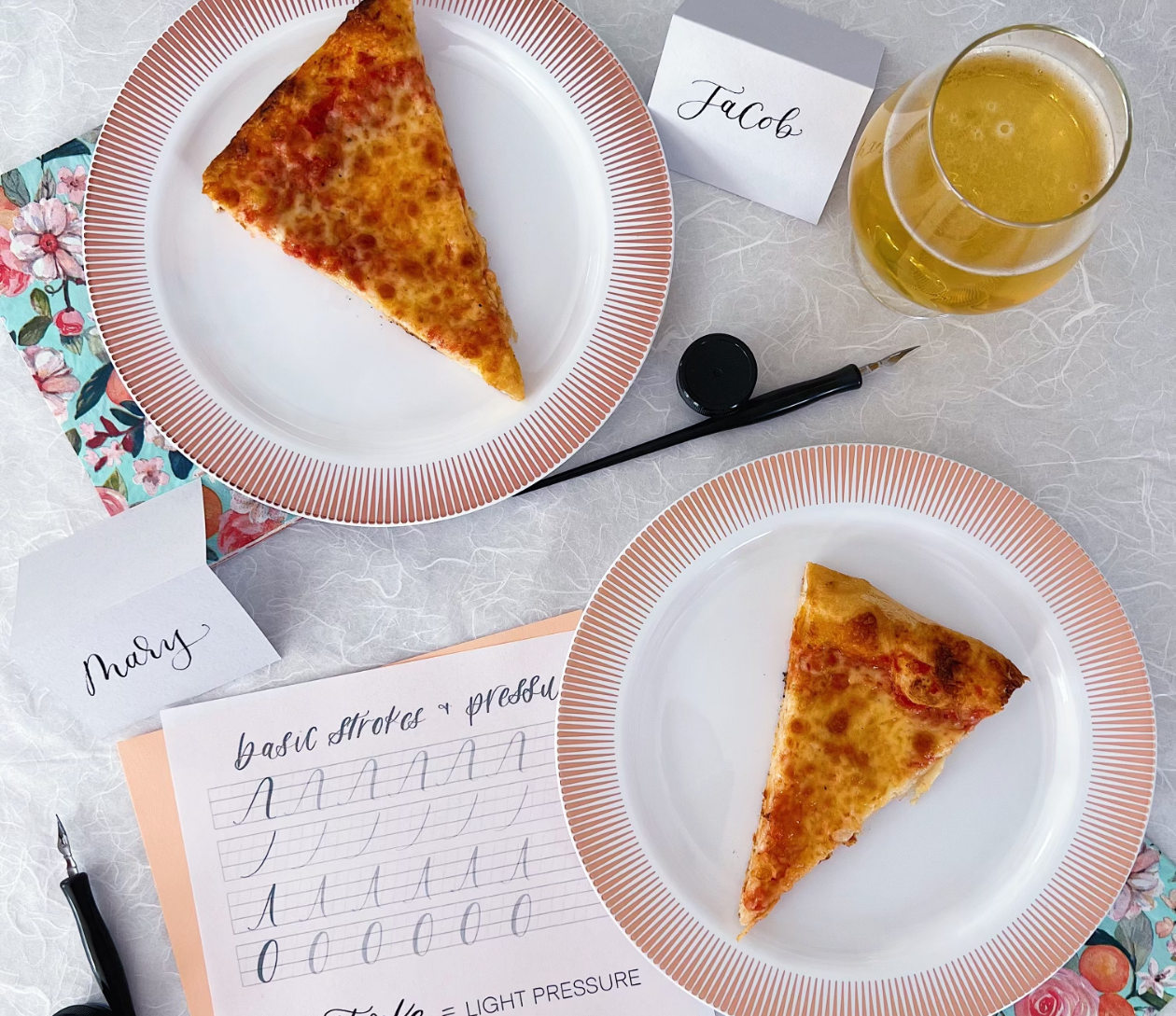 Class Expectations: Yes, lefties are welcome too! This class is encouraged for someone who has never taken a calligraphy class before. We teach the basics, and our expectation for you is to have ink flowing through your nib with enough confidence to be able to practice way beyond class. We love using tracing paper with our guides to help you build muscle memory and develop your own style!  If you have tried calligraphy out before, this class will be a great refresher and hopefully a chance to try some new supplies from our beginner kit that will re-introduce you to this lovely form of art!