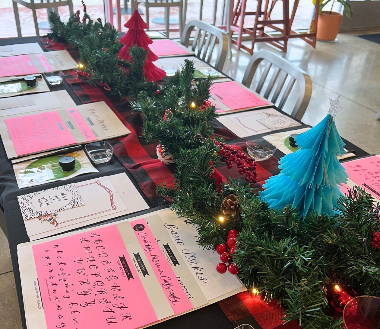 Class Expectations: Yes, lefties are welcome too! This class is encouraged for someone who has never taken a calligraphy class before. We teach the basics, and our expectation for you is to have ink flowing through your nib with enough confidence to be able to practice way beyond class. We love using tracing paper with our guides to help you build muscle memory and develop your own style! If you have tried calligraphy out before, this class will be a great refresher and hopefully a chance to try some new supplies from our beginner kit that will re-introduce you to this lovely form of art!
