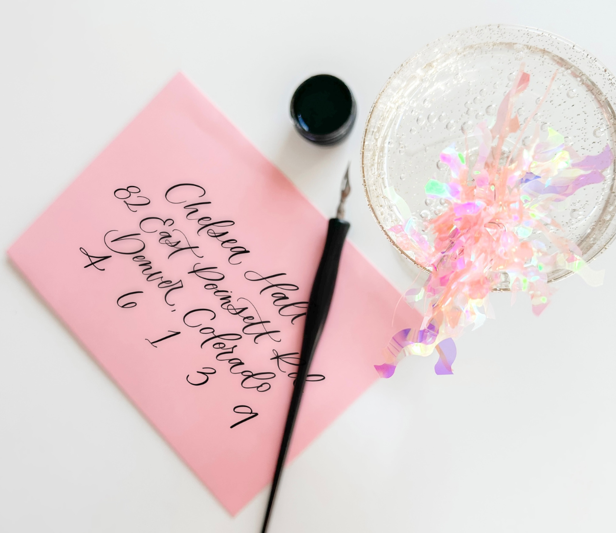 Class includes 1.5 hours of instruction and demonstration, our beginner’s calligraphy kit (two nibs, black ink pot, 2 letter guides, tracing paper, and straight pen holder), and all materials to write on. Everything is yours to keep at the end of the workshop!