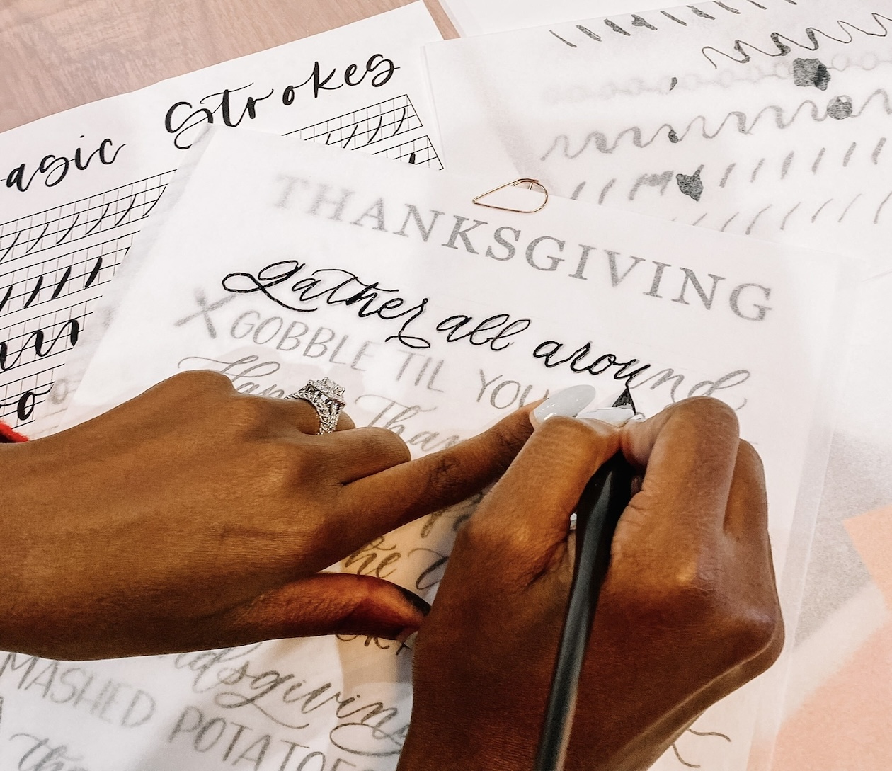 Class Expectations: Yes, lefties are welcome too! This class is encouraged for someone who has never taken a calligraphy class before. We teach the basics and our expectation for you is to have ink flowing through your nib with enough confidence to be able to practice way beyond class. We love using tracing paper with our guides to help you build muscle memory and develop your own style! If you have tried calligraphy out before, this class will be a great refresher and hopefully a chance to try some new supplies from our beginner kit that will re-introduce you to this lovely form of art!