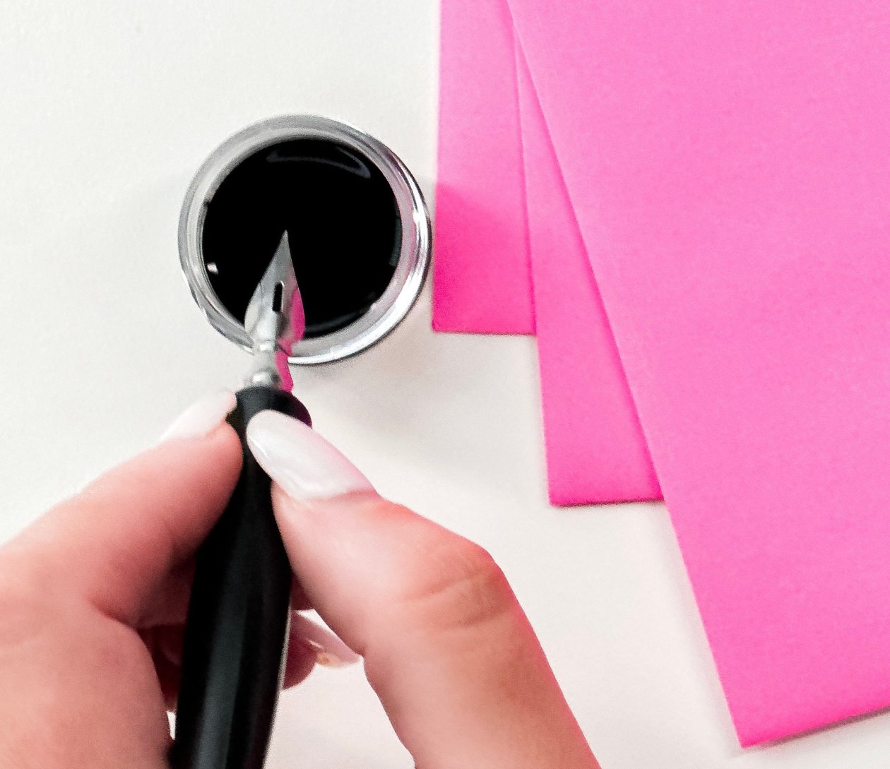 Class includes 1.5 hours of instruction and demonstration, our beginner’s calligraphy kit (two nibs, black ink pot, 2 letter guides, tracing paper, and straight pen holder), and all materials to write on. Everything is yours to keep at the end of the workshop!