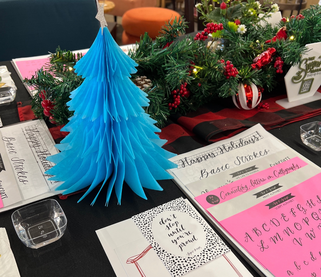 Class Expectations: Yes, lefties are welcome too! This class is encouraged for someone who has never taken a calligraphy class before. We teach the basics, and our expectation for you is to have ink flowing through your nib with enough confidence to be able to practice way beyond class. We love using tracing paper with our guides to help you build muscle memory and develop your own style! If you have tried calligraphy out before, this class will be a great refresher and hopefully a chance to try some new supplies from our beginner kit that will re-introduce you to this lovely form of art!