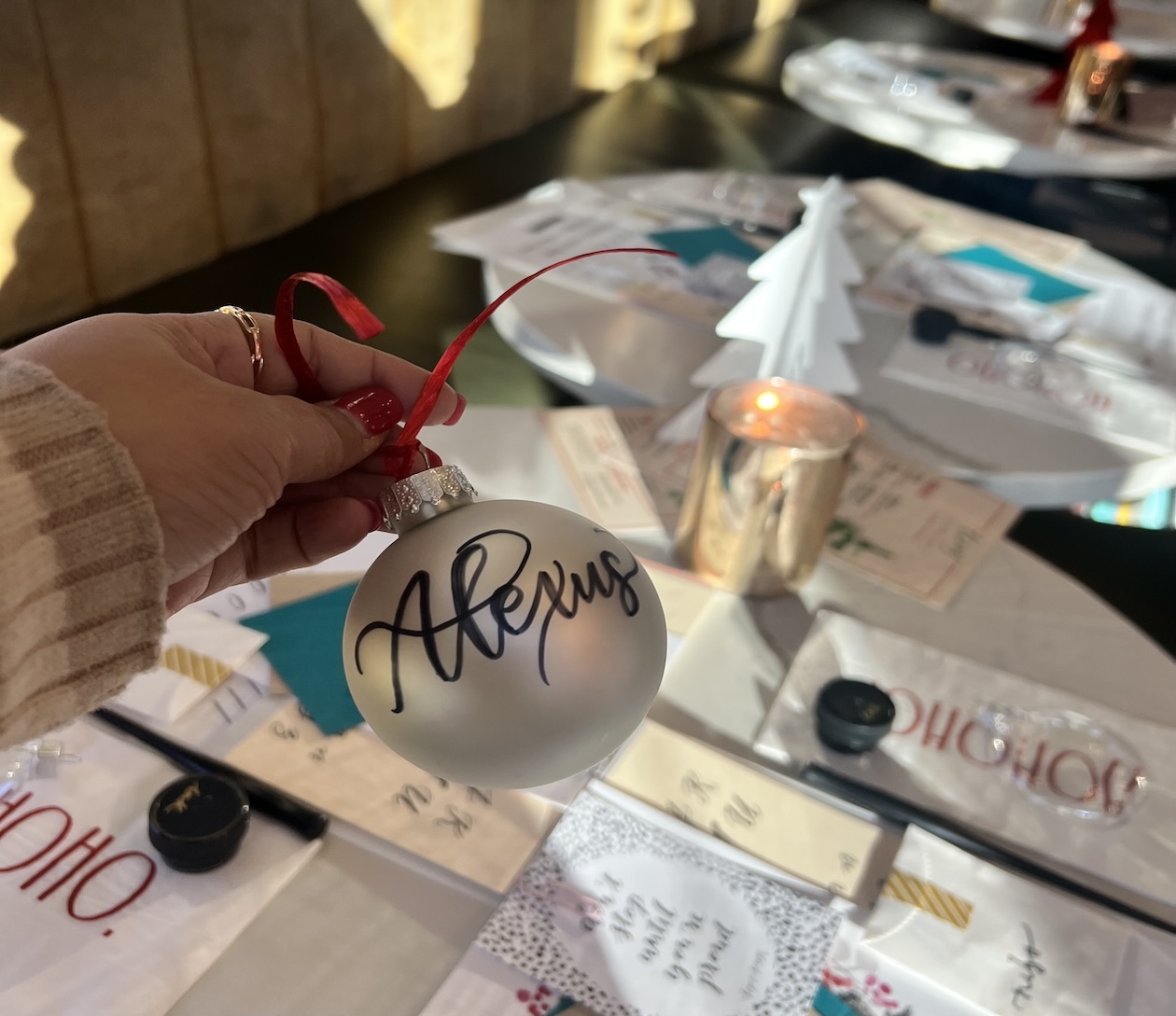 Class includes 1.5 hours of instruction and demonstration, our beginner’s calligraphy kit (two nibs, black ink pot, 2 letter guides, tracing paper and straight pen holder), and all materials to write on. Everything is yours to keep at the end of the workshop! Additionally, we will be lettering on a take-home acrylic ornament at the end of our class time!