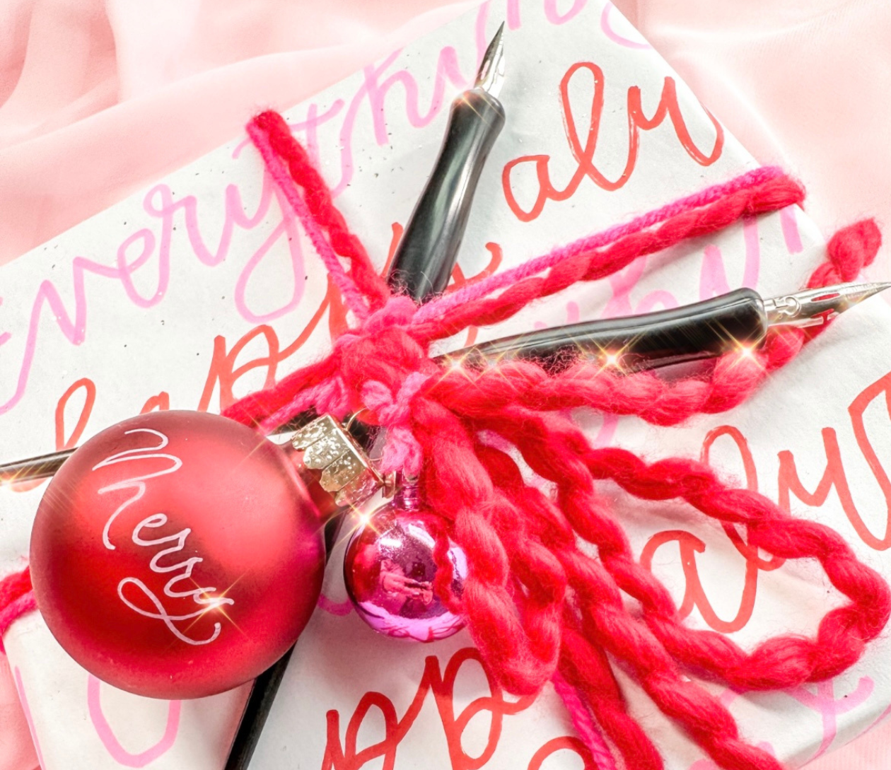 Class includes a BOGO beverage coupon + 1.5 hours of instruction and demonstration, our beginner’s calligraphy kit (two nibs, black ink pot, 2 letter guides, tracing paper and straight pen holder), and all materials to write on. Everything is yours to keep at the end of the workshop! Additionally, we will be lettering on a take-home acrylic ornament at the end of our class time!