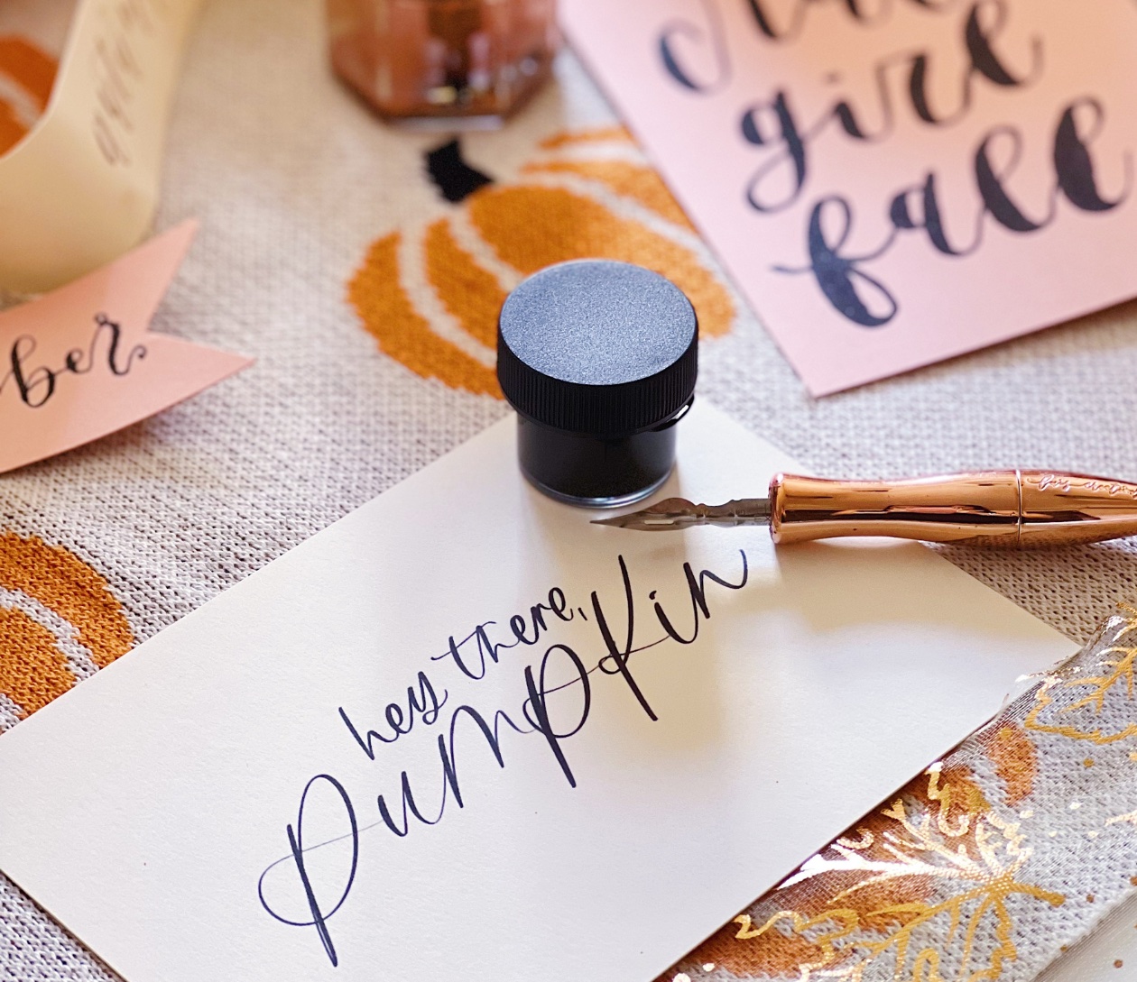 Join us at Bonsai Paper Co. in Dallas, TX for a festive workshop of fall fun and pretty lettering for beginners! Whether you’re a stationery nerd, DIY Bride-to-be, or just a crafty individual, in this workshop you’ll be learning an introduction to modern calligraphy with a pointed dip pen and ink. We will cover all the basics and get you ready to add those special lettered details to all your fall spreads – think lettered pumpkins at your front door, on your bar cart, as a party hostess gift, or special occasion gift!