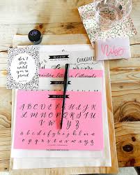 - Beginner calligraphy kit (two nibs, ink pot, letter guides, tracing paper, pen holder)