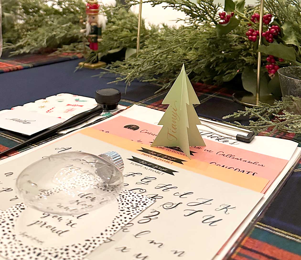 Whether you are a crafty individual or want to see what calligraphy is all about – join this fun intro workshop of beautiful lettering for beginners! Taught by calligraphy pro from Sip & Script, this party will be an introduction to modern calligraphy with a pointed dip pen and ink. Join us for a fun evening learning a new skill just in time for the holidays. Lefties and beginners welcome!