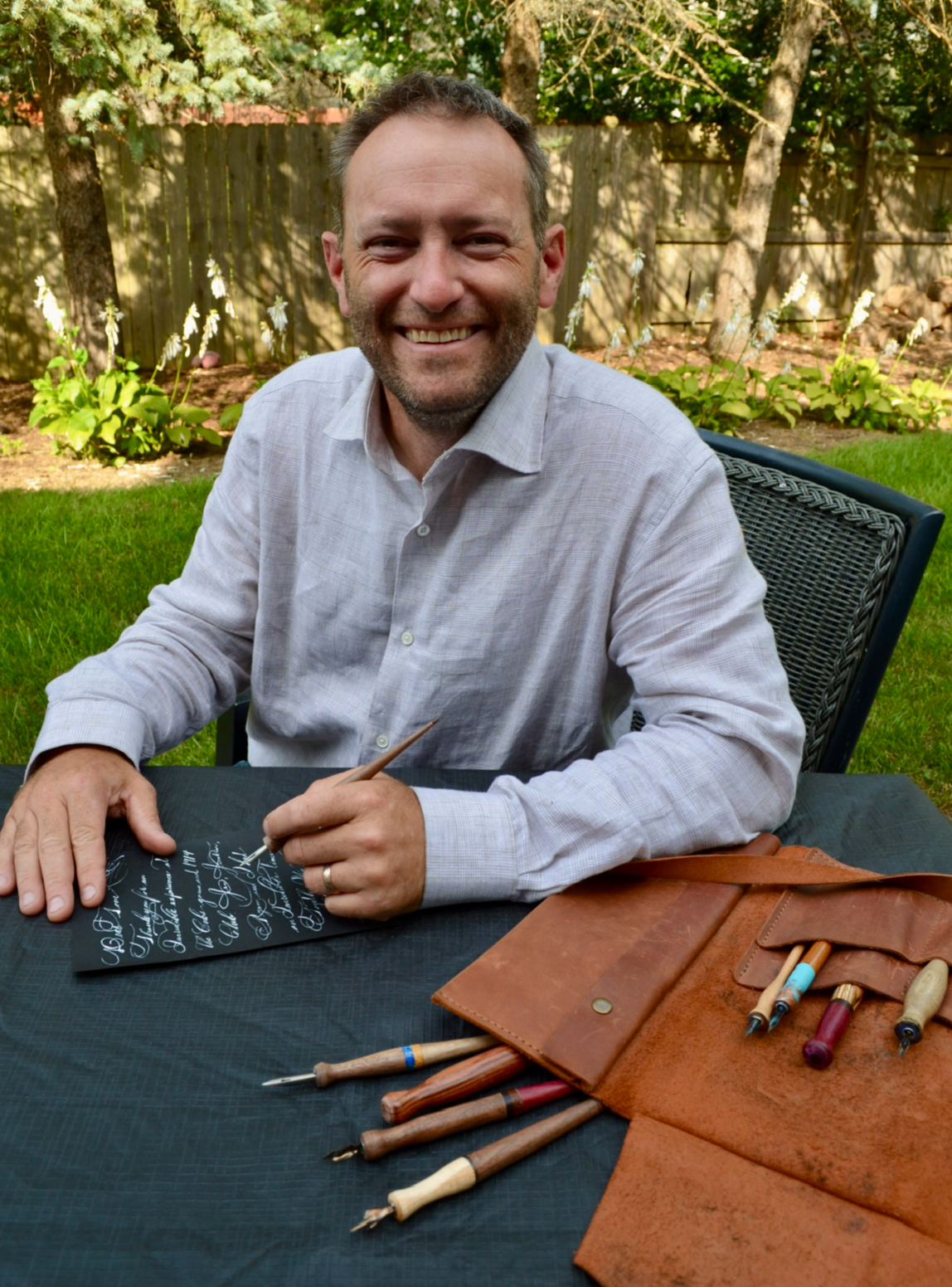 My journey into calligraphy began at age 10, when I took my first class, and the teachers were perplexed by how to guide this left-handed boy. Fast forward to 2020, when I discovered the art of the pointed pen and instantly fell in love with its elegance and ability to flourish. Since then, I've been dedicated to teaching both children and adults the beauty of calligraphy, all while continuing to hone my own skills. When I'm not teaching, practicing, or working on commissioned pieces, you can find me in my shop—turning new pens, or enjoying the great outdoors while birdwatching.